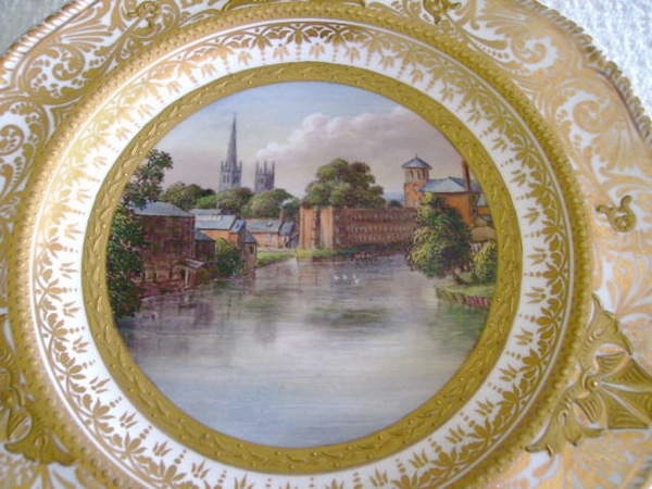 “Old Silk Mill, Derby” signed H S Hancock, Crown Derby, King Street Factory